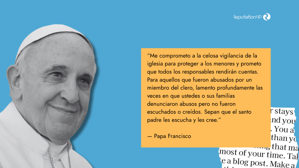 “Me comprometo a la celosa vigilancia de la iglesia para proteger a los menores y prometo que todos los responsables rendirán cuentas. Para aquellos que fueron abusados por un miembro del clero, lamento profundamente las veces en que ustedes o sus familias denunciaron abusos pero no fueron escuchados o creídos. Sepan que el santo padre les escucha y les cree.”